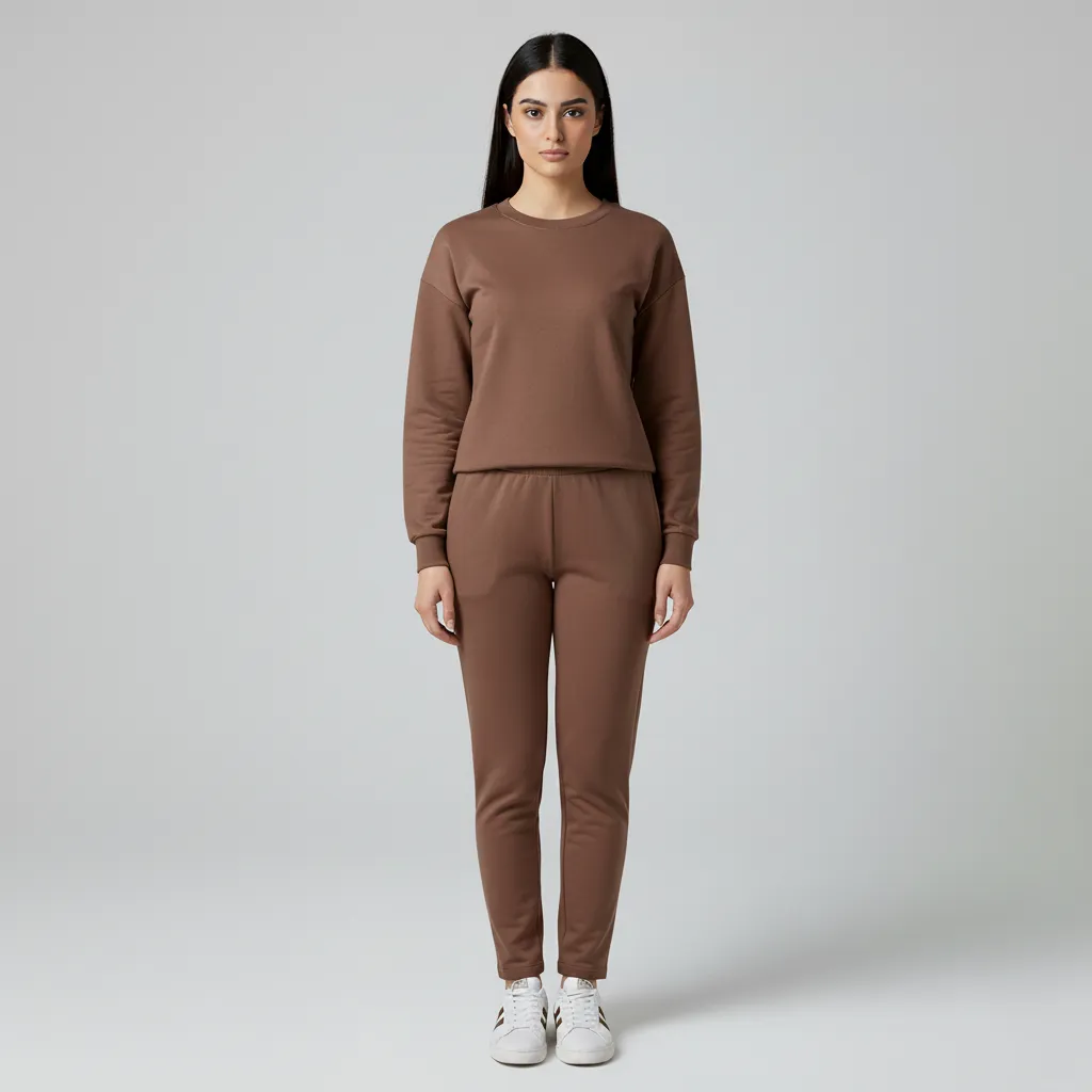 The tracksuit is made from soft polyester fleece. It feels warm, smooth, and comfortable on the skin while still being breathable enough for daily wear and light activity. The fabric is designed to stay comfortable over long hours.